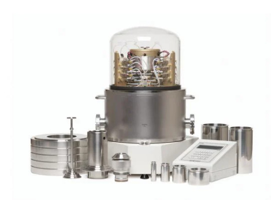 The AMH-38 provides automated mass handling of a 38 kg mass set for the PG7601 piston gauge platform. The mass handling system is integrated into a vacuum chamber which provides KF40 vacuum fittings for connection of a turbo molecular vacuum pump and external vacuum gauge if desired. Automated mass handling eliminates the need to break the vacuum between pressure points and reference vacuum as low as 0.01 Pa (< 0.1 mTorr) can be maintained indefinitely.